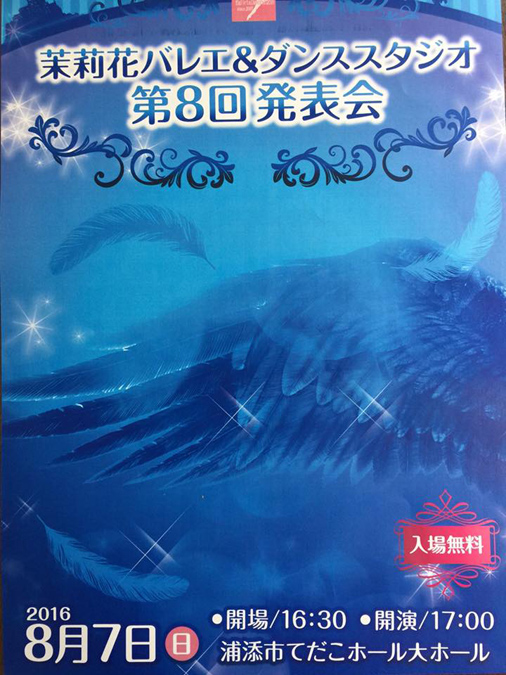 「茉莉花バレエ&ダンススタジオ第8回発表会」無事終わりました。大ホールでの舞台はいろんな意味でスケールが大きく、生徒達も伸び伸びと楽しそうに踊っていました。初舞台でテンションマックスな子や、緊張して体調崩してしまう子、ふざけてお母さんに怒られ泣いちゃう子のお化粧を心配したり。衣装を取っ替え引っ替え大忙しのアドバンスクラスの生徒も頑張りました。